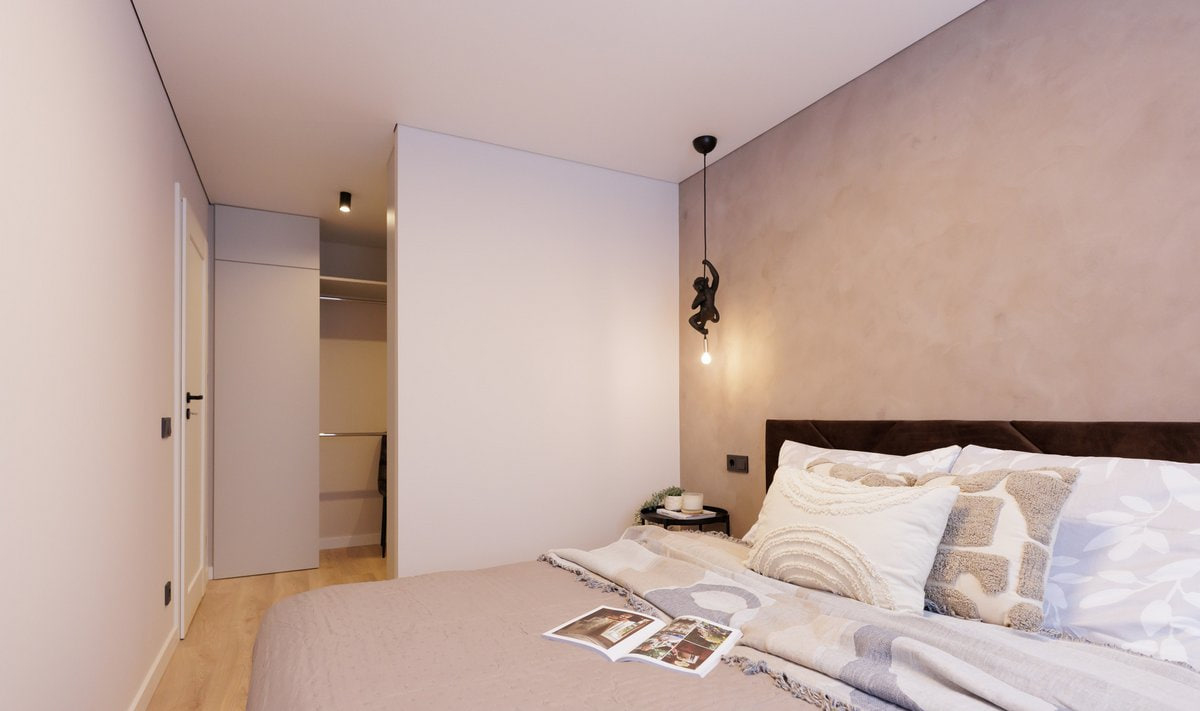 Living room combined with kitchen: Spacious room with all necessary appliances, kitchen utensils, a small fold-out sofa, and a dining table.